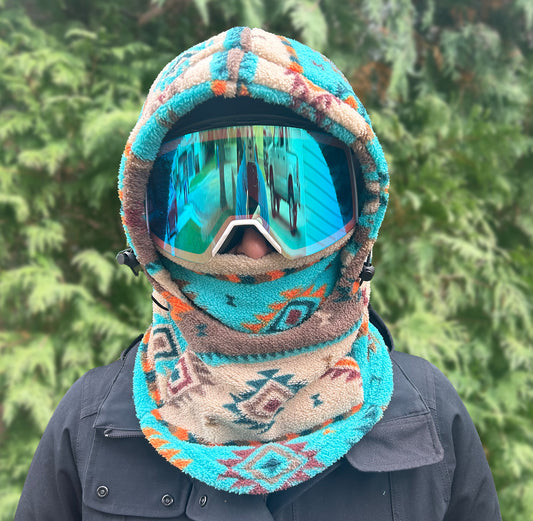 Blue Aztec Sherpa Ski Hood | Bold Colors, Cozy Warmth