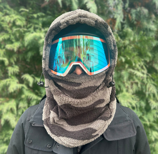 Black Camo Sherpa Ski Hood | Stealth Warmth with Bold Camo Style